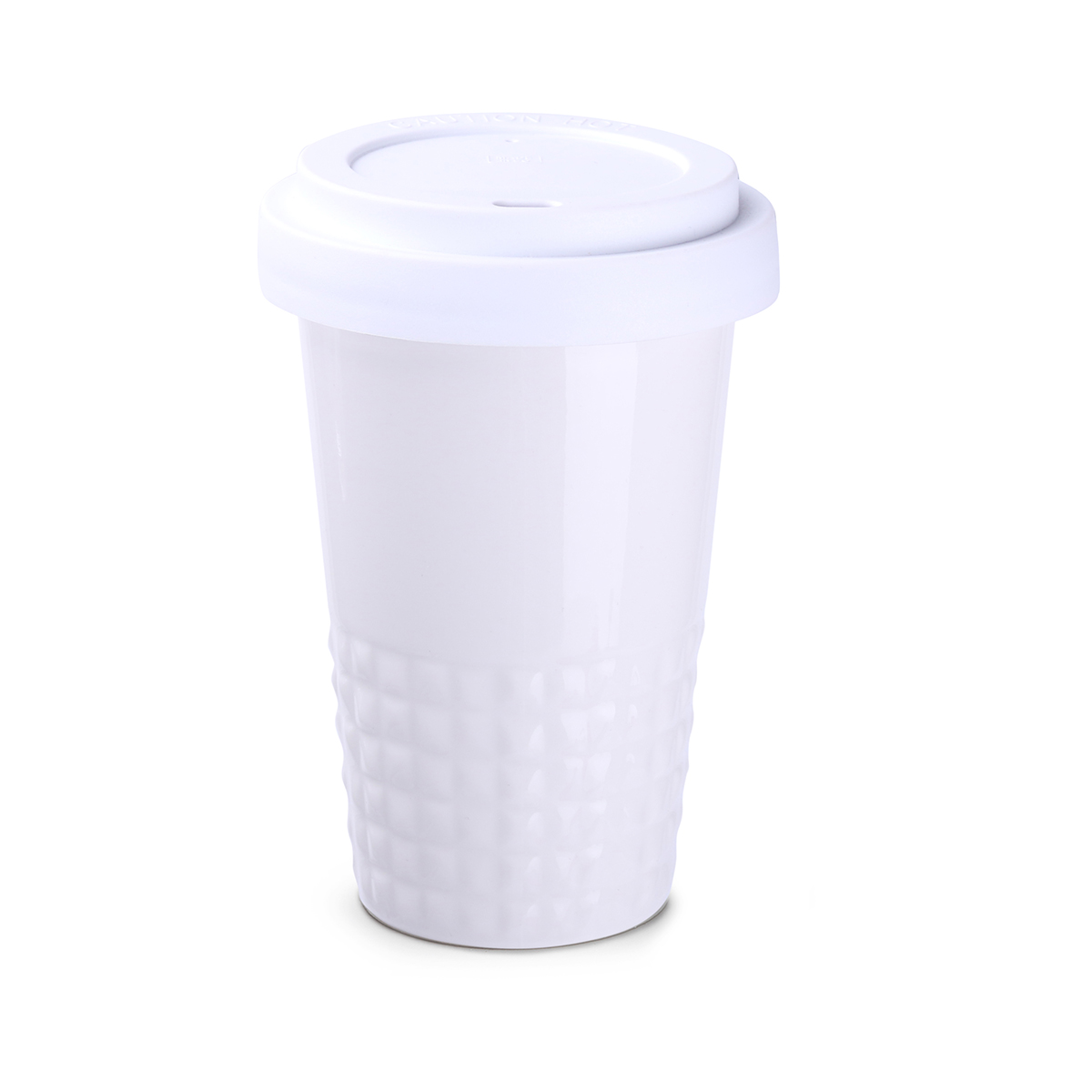 Subtelne wykończenie dolnej części kubka w formie symetrycznych wypustek. Porcelanowy kubek dwuścienny, zapewniający doskonałą izolację ciepła. Wyjątkowo szczelna przykrywka. Model dla aktywnych.